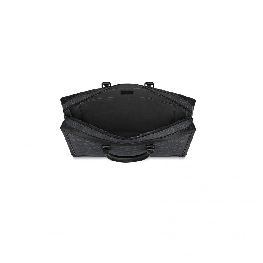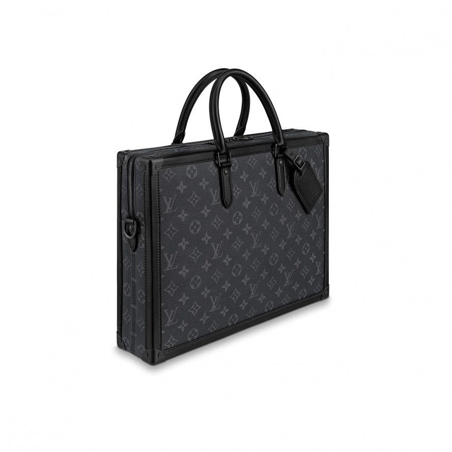 ブラックとグレーが美しいモノグラム・エクリプス キャンバスで仕立てた「ソフトトランク・ブリーフケース」。ボクシーなラインと補強したコーナー部分のディテールが、トランク製造業者として創業したルイ・ヴィトンの伝統を彷彿させます。レザーのトップハンドルと取外し可能なストラップでさまざまなスタイルをお楽しみいただけるアイテムは、内ポケットと外側のバックポケットを備え、抜群の機能性を誇ります。 |
