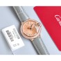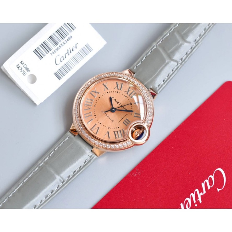 フランスのジュエリーと時計の家カルティエのオリジナルクラシックモデルバロンブルードゥカルティは、スチールブレスレットを身に着けた女性用のミニチュアサイズ33mmです。ステンレススチールとロックゴールドのケース、フェイクスピネルカボションをあしらったフルーティングを施されたスチールクラウン、サファイアクリスタル