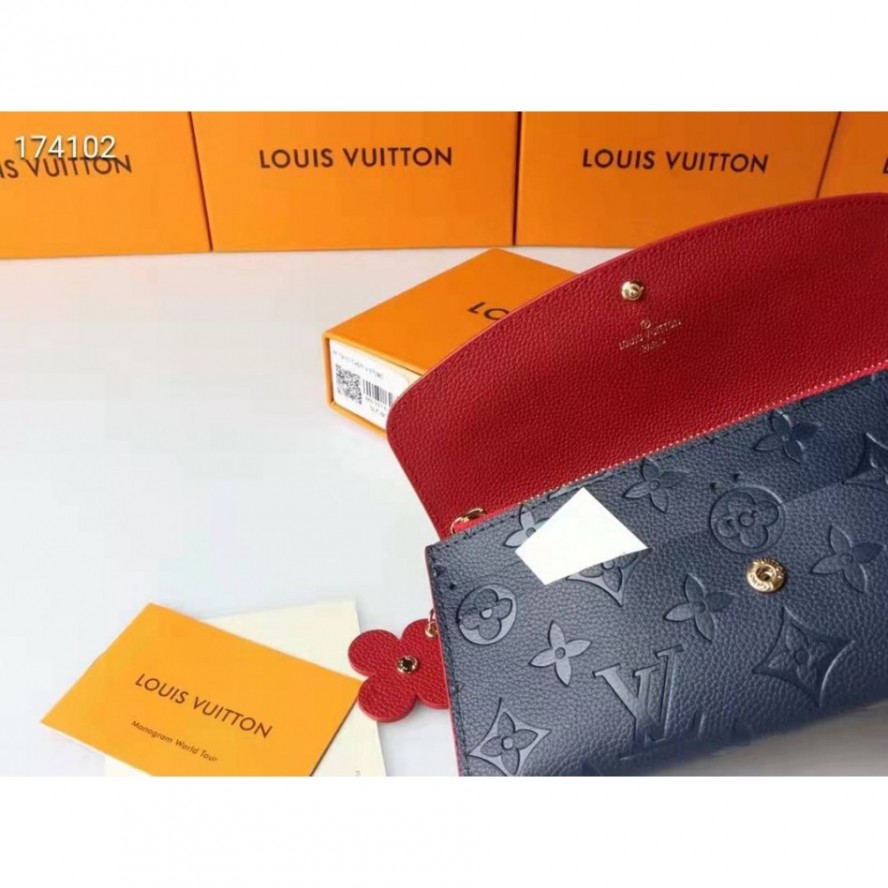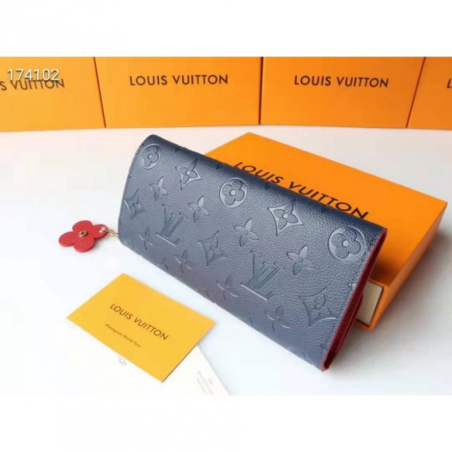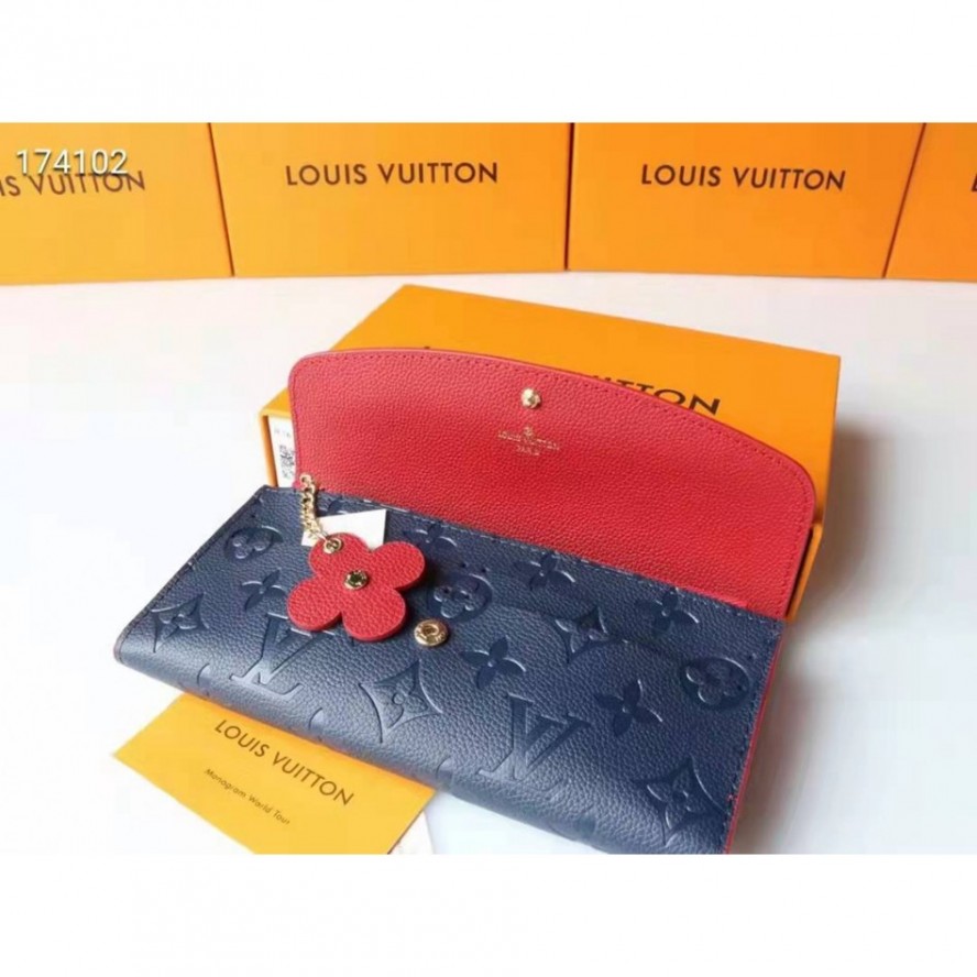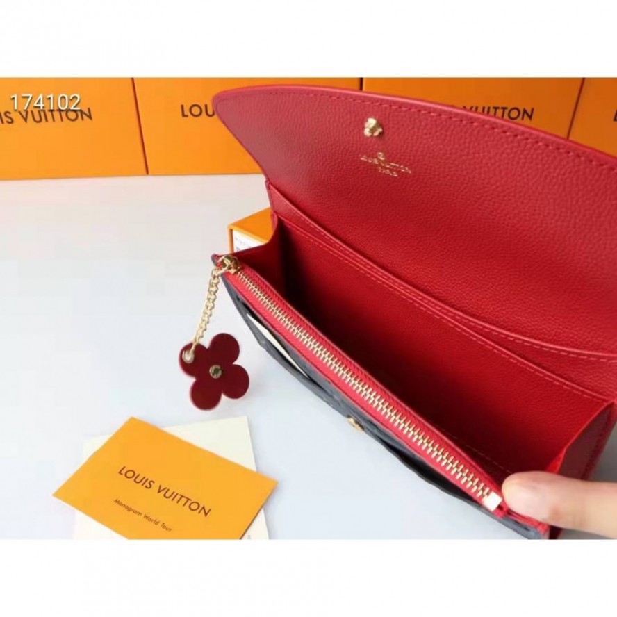 LV M63918クラシックEMILIEシリーズモノグラム牛革フラワー隠しバックルロングクリップ