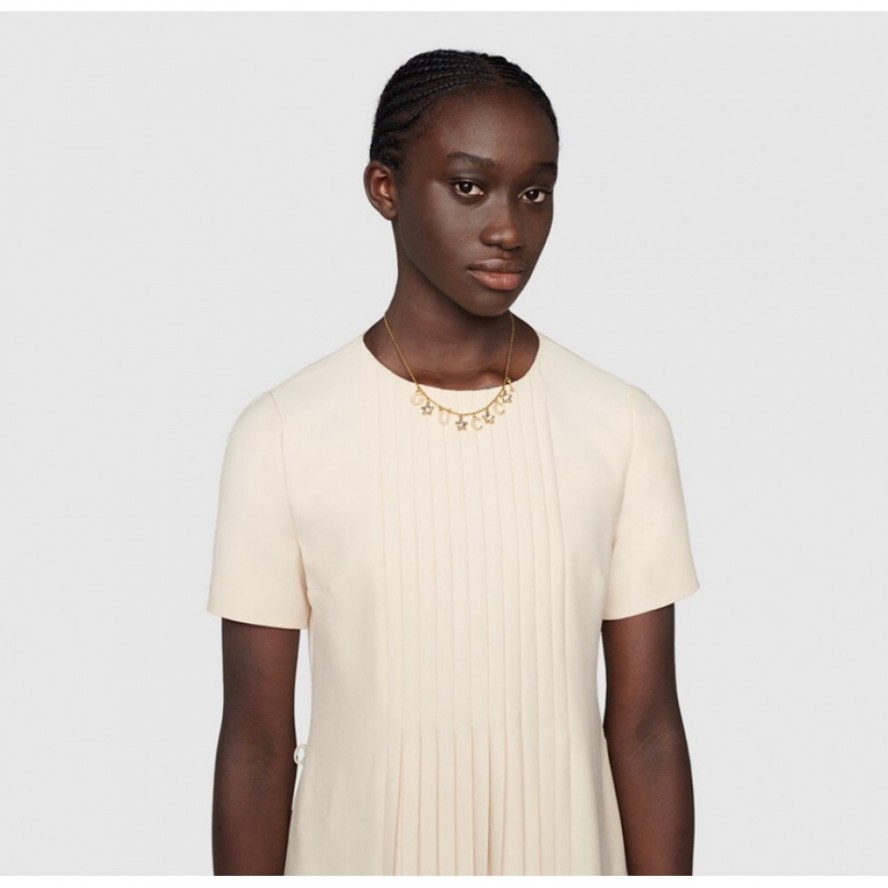 テクスチャードリンクとスムースリンクを交互に配した、コンテンポラリーな雰囲気のシルバーチェーンのネックレス。グッチを象徴するインターロッキングGをエングレービングで表現したペンダントが存在感を放っています。