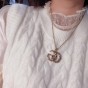 テクスチャードリンクとスムースリンクを交互に配した、コンテンポラリーな雰囲気のシルバーチェーンのネックレス。グッチを象徴するインターロッキングGをエングレービングで表現したペンダントが存在感を放っています。